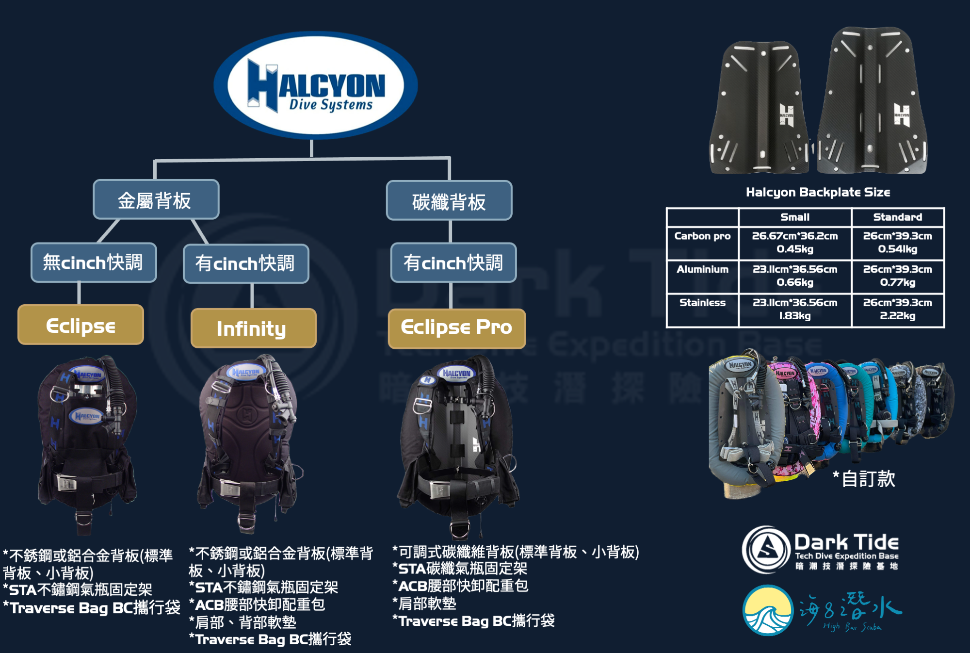 ✱ Halcyon提供多款專業背囊式BC的選擇,歡迎您來電02-2790-8507或私訊暗潮約門市現場服務,讓暗潮建議您最適合的Halcyon BCD!