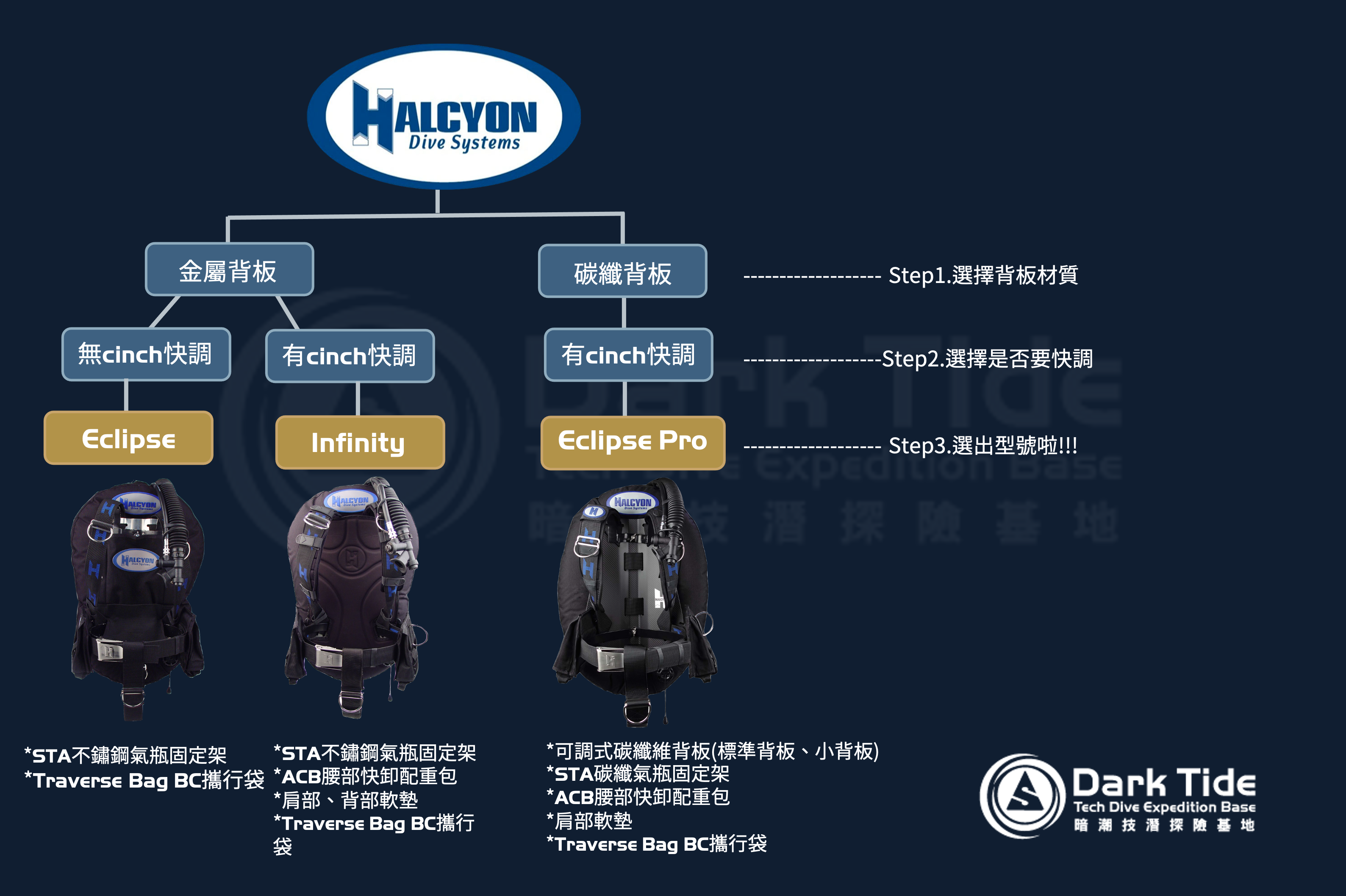 ✱ Halcyon提供多款專業背囊式BC的選擇,歡迎您來電02-2790-8507或私訊暗潮約門市現場服務,讓暗潮建議您最適合的Halcyon BCD!